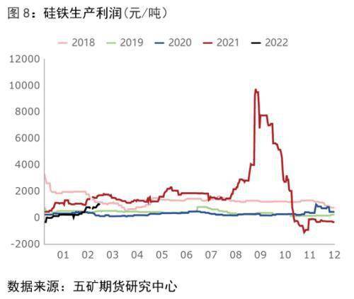 利潤方面,截止3月11日,錳硅內(nèi)蒙生產(chǎn)利潤-322元/噸,環(huán)比+44元/噸,同比-724元/噸,利潤率-3.81%;錳硅廣西生產(chǎn)利潤 -877元/噸,環(huán)比+25元/噸,同比-608元/噸,利潤率-10.31%;硅鐵內(nèi)蒙生產(chǎn)利潤954元/噸,環(huán)比-46元/噸,同比-729元/噸,利潤率11.29%;硅鐵寧夏生產(chǎn)利潤1433元/噸,環(huán)比-46元/噸,同比+49元/噸,利潤率16.86%;從產(chǎn)業(yè)鏈利潤的角度看,受礦價成本擠壓,錳硅北方產(chǎn)區(qū)利潤處于同期偏低水平,而南方產(chǎn)區(qū)虧損下產(chǎn)量依然受限。硅鐵利潤處于中等水平,低于去年同期水平。